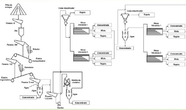 Para separação e concentração de metais de diferentes pesos específicos